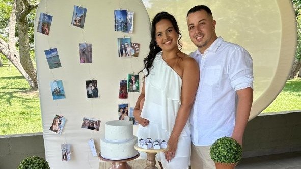 Foi só no Carnaval de fevereiro de 2018 que rolou o primeiro beijo — totalmente despretensioso, casual mesmo. Mas ali já nasceu alguma coisa. Um mês depois, em março, a gente já não conseguia mais se desgrudar. Ainda não era “oficial”, porque ele ainda não tinha pedido em namoro (olha a enrolação!), mas em julho daquele mesmo ano veio a aliança e tudo ficou mais sério.